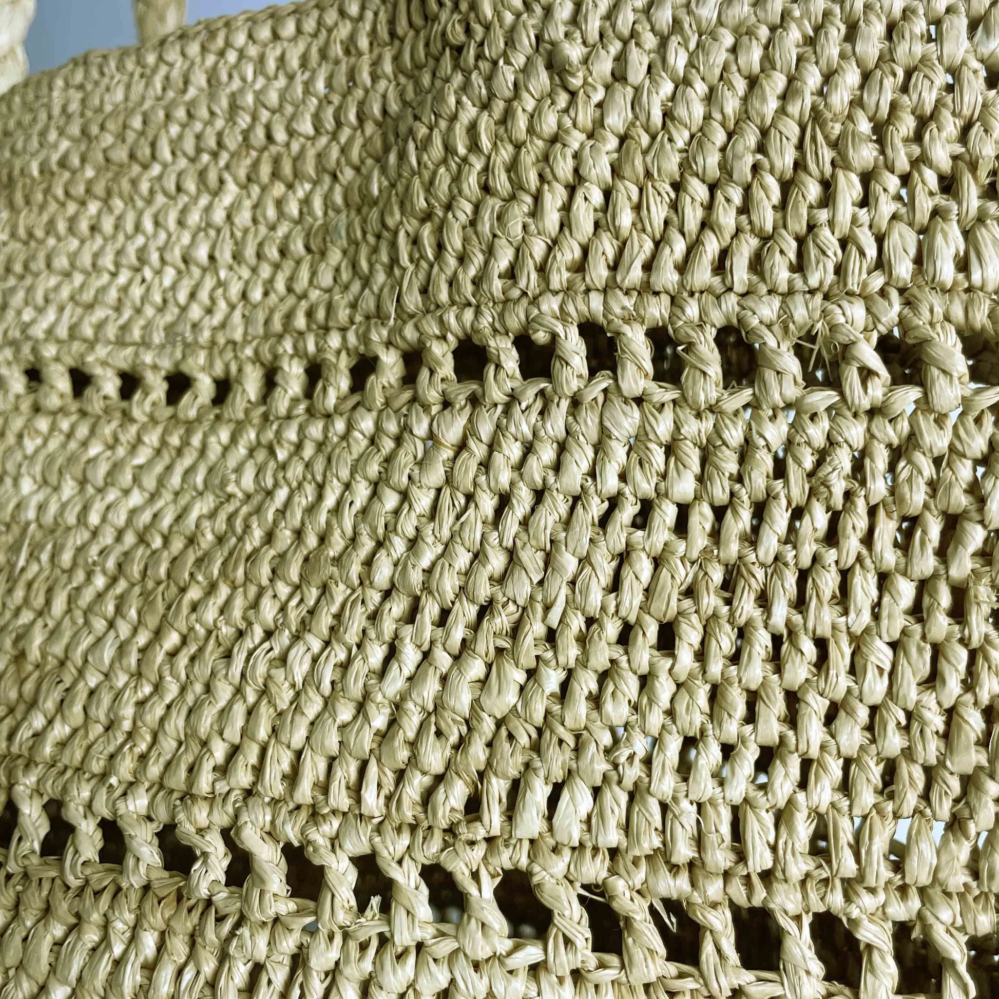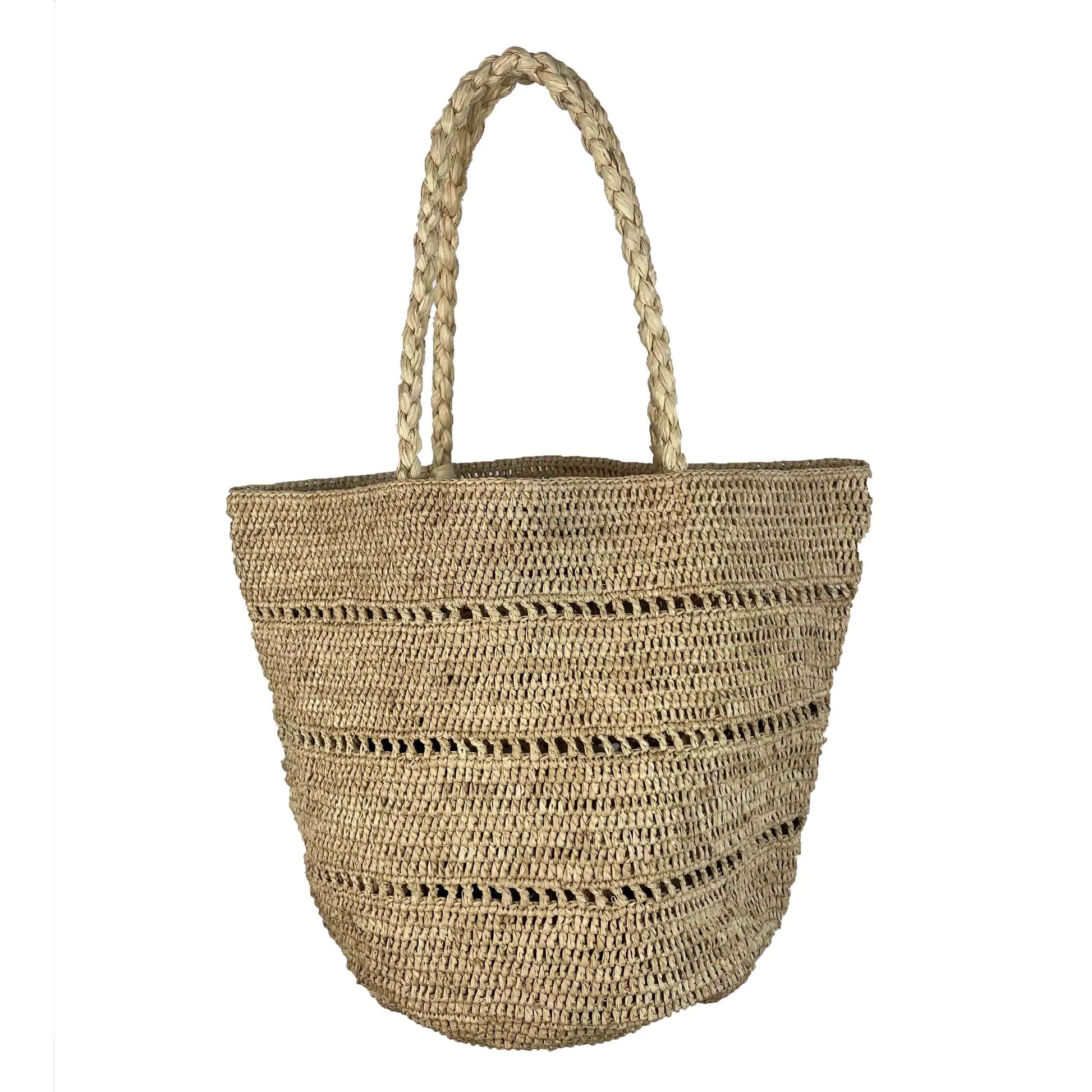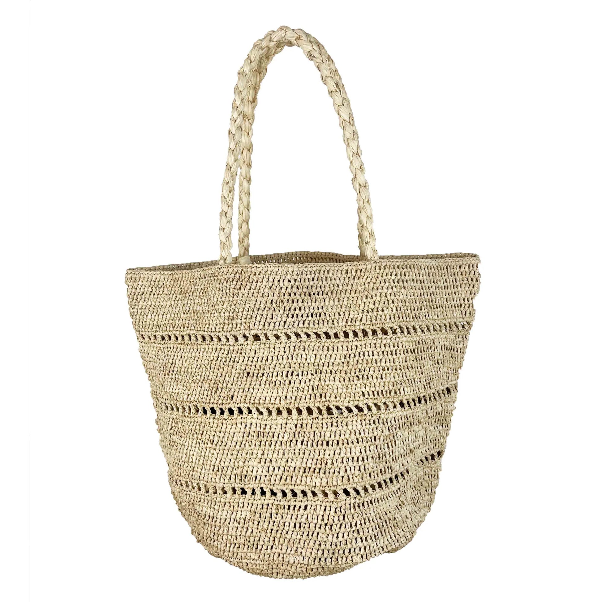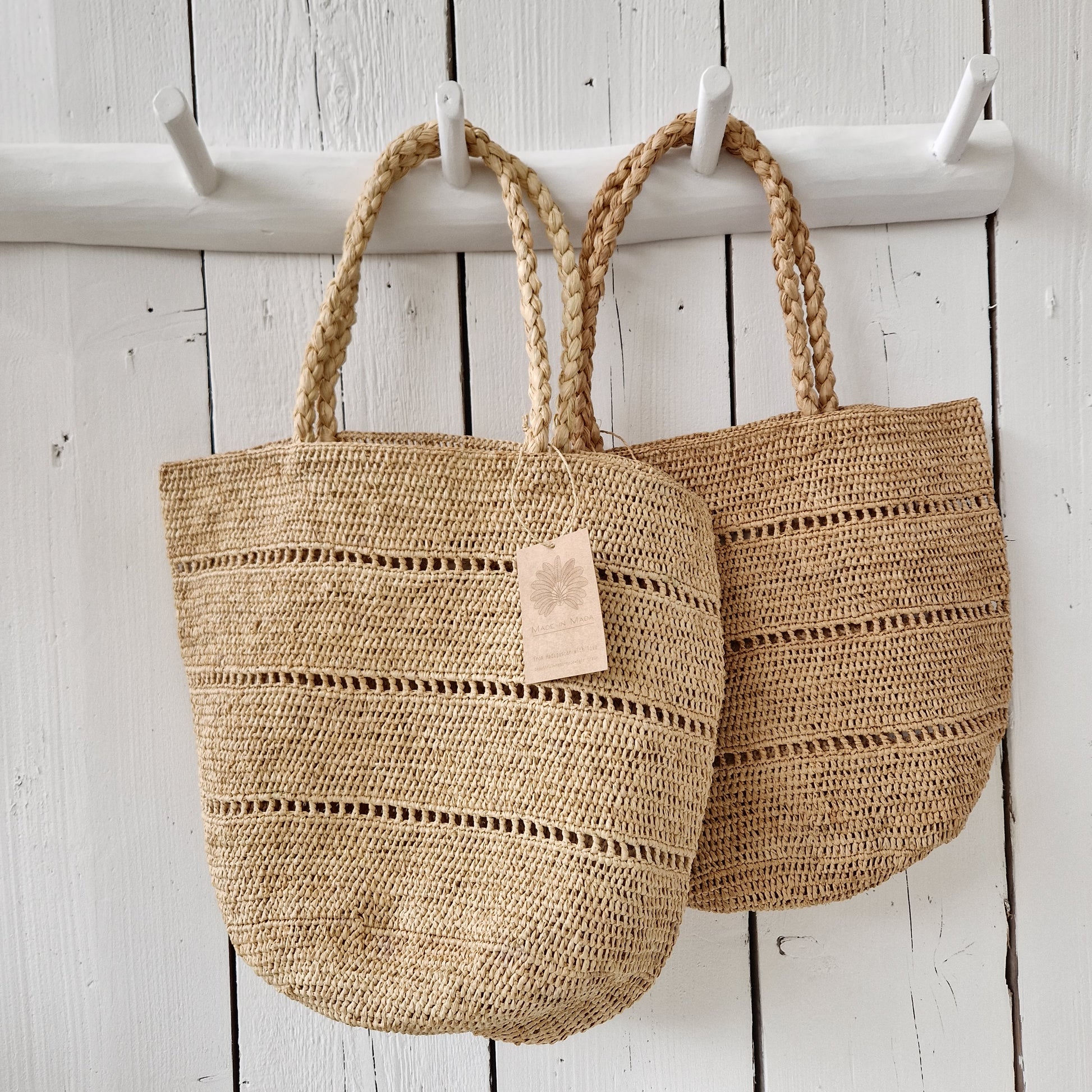 The bag has beautiful braided handles and is hand-woven from sustainable raffia fibers, obtained in an ecologically responsible way.