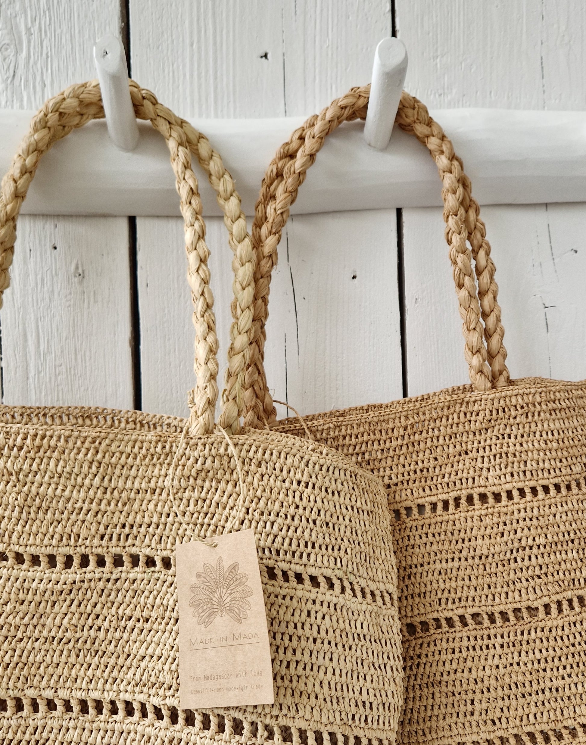 Made in Mada is a brand from Australia by 2 very talented designers Gaëlla & Dimitri who have beautiful bags and accessories made from 100% raffia in Madagascar.