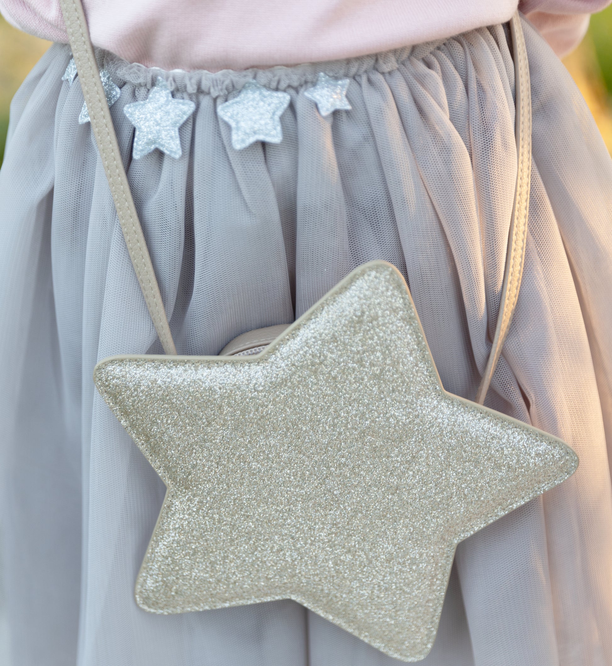 A real eye-catcher is the Glitter Star Bag in champagne gold from the beautiful brand Billy loves Audrey.