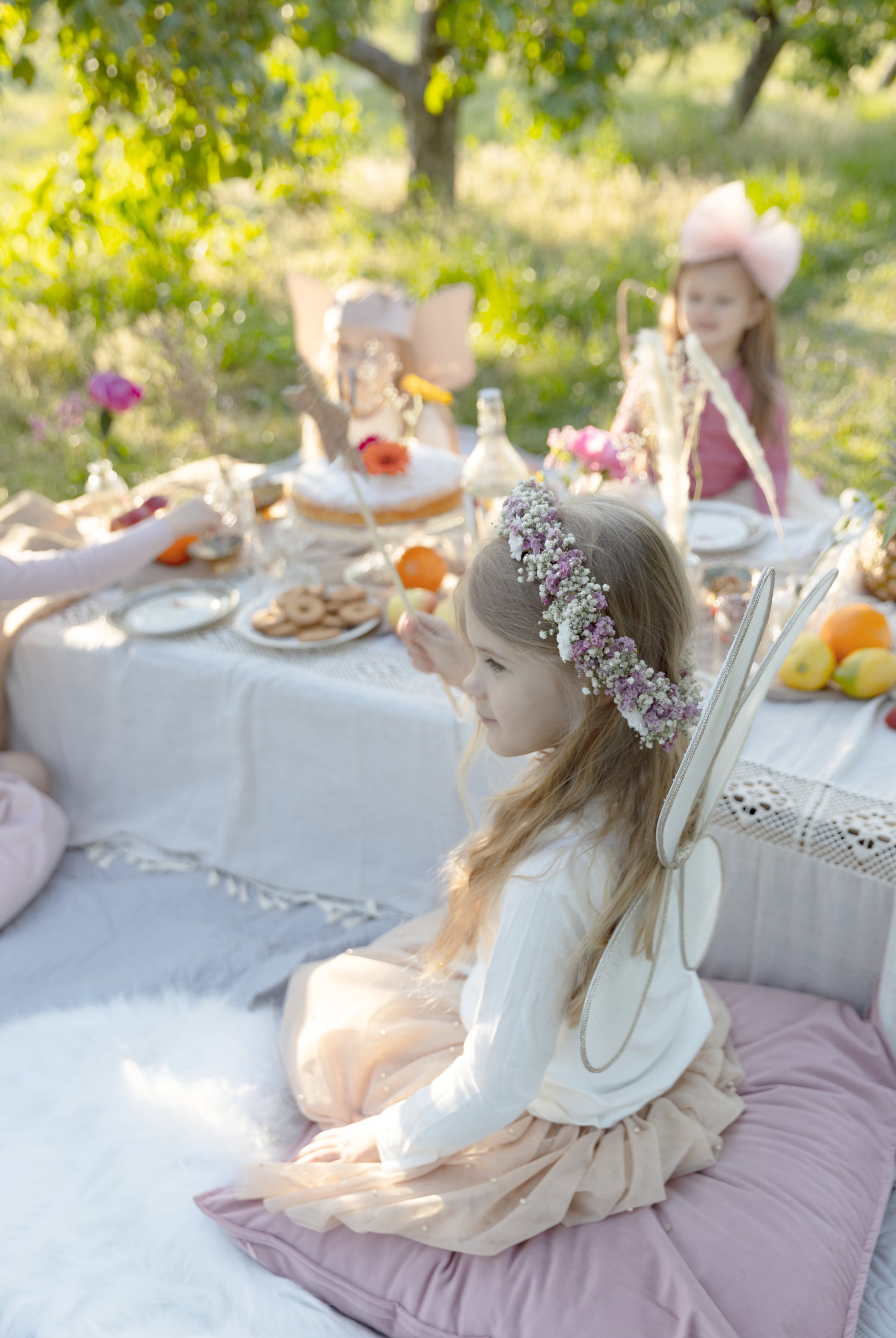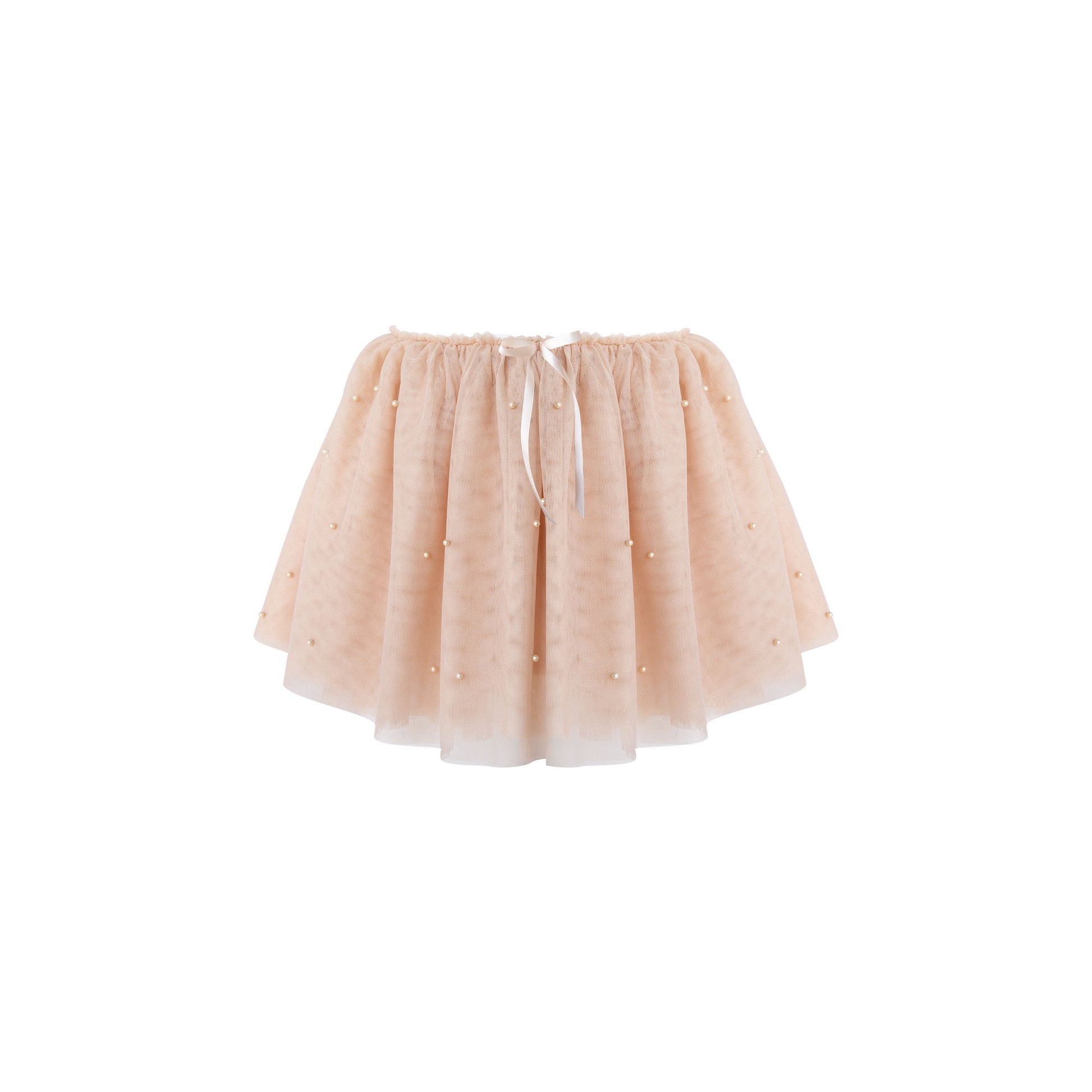 This stylish and fluffy tulle skirt "Audrey" with beautiful pearls on the top layer of the skirt, which glitter perfectly in the sun, is the perfect choice for all the little princesses among us.