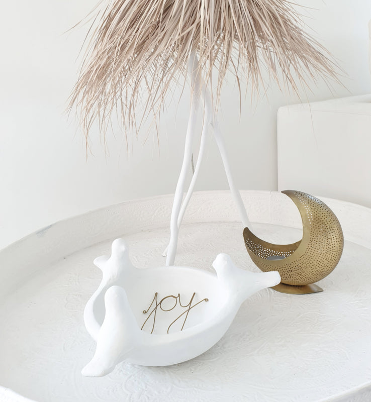 This very beautiful bowl with 3 birds from Rock the Kasbah is made of white earthenware. And is available in 2 different sizes. The bowl is actually very decorative everywhere.