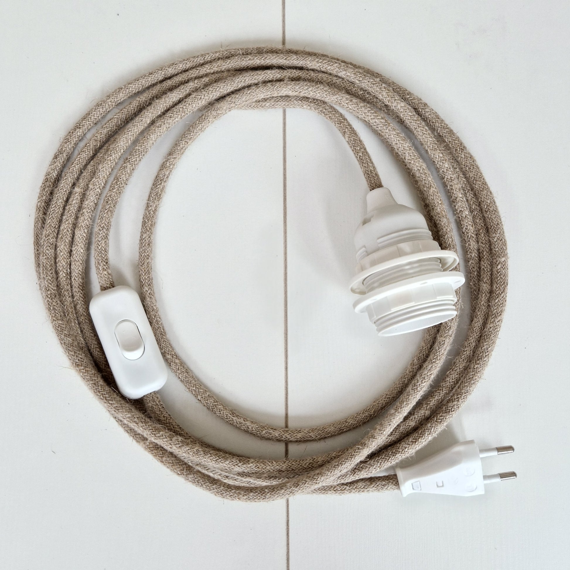 Very nice to combine with our Cloche or seagrass lamps is this decorative electrical system in a casing of natural linen including white plug and light switch.