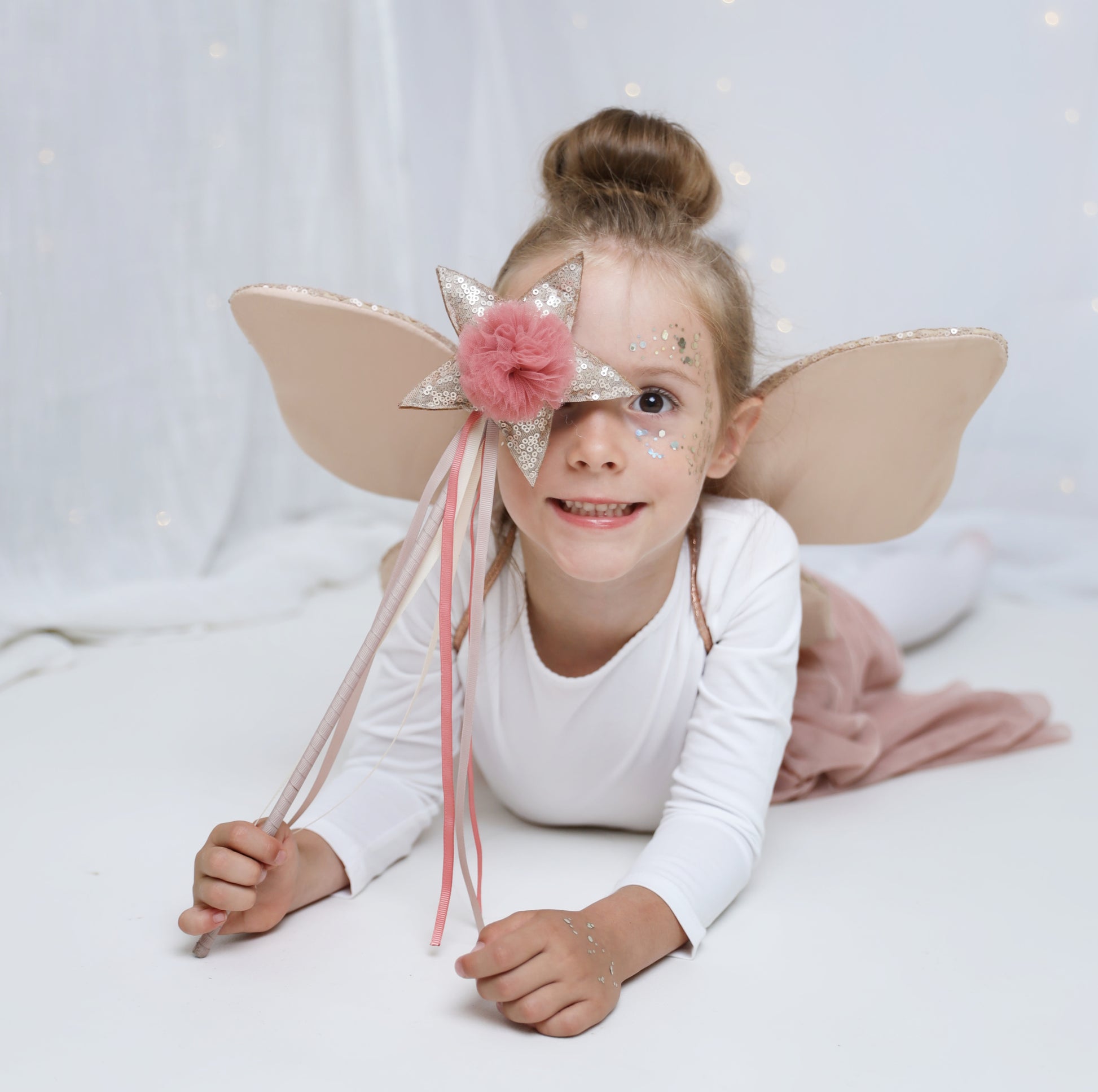 The beautiful sequin wings Aurelia in vintage pink from the Billy loves Audrey brand sparkle and glitter in beautiful warm tones.