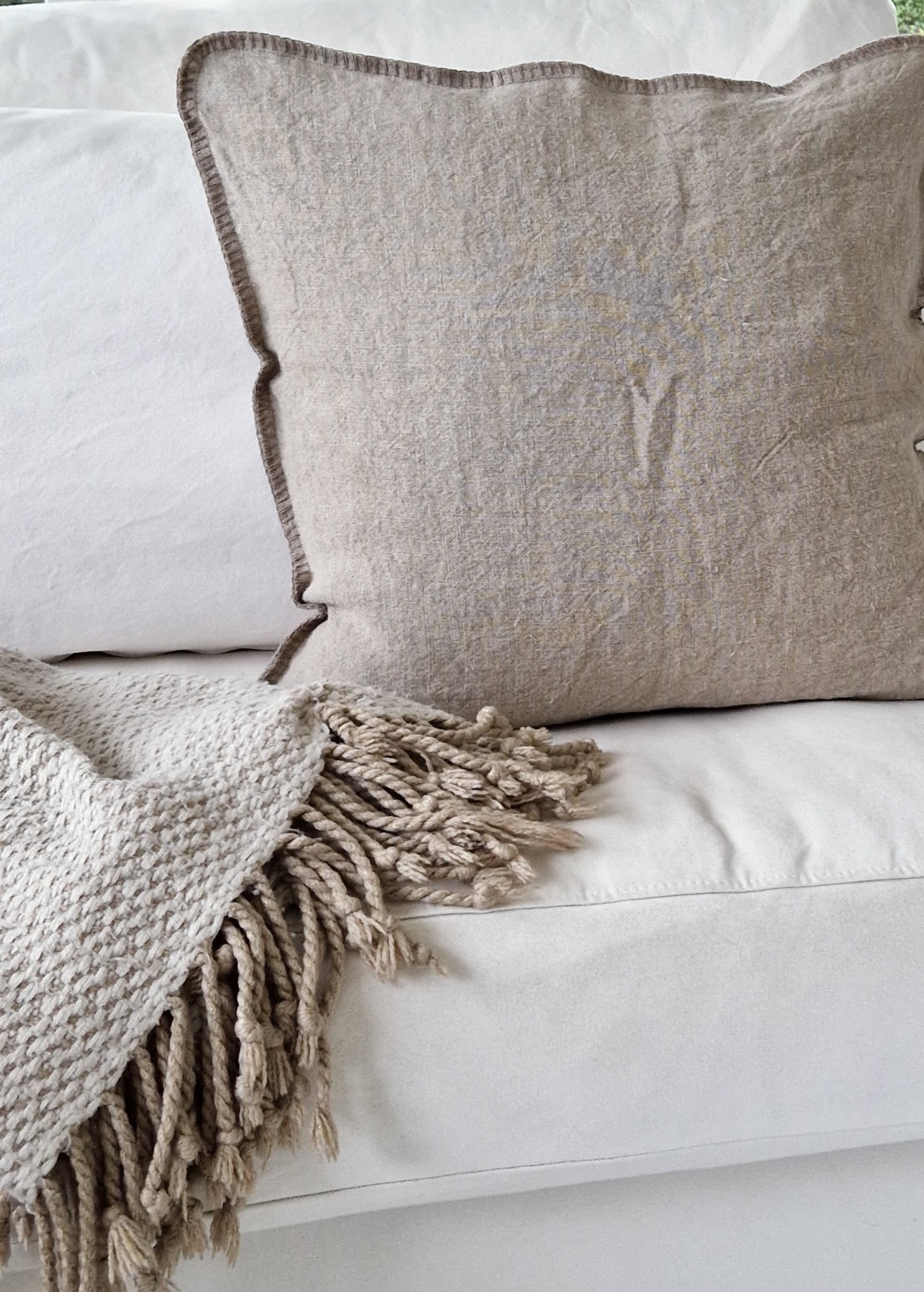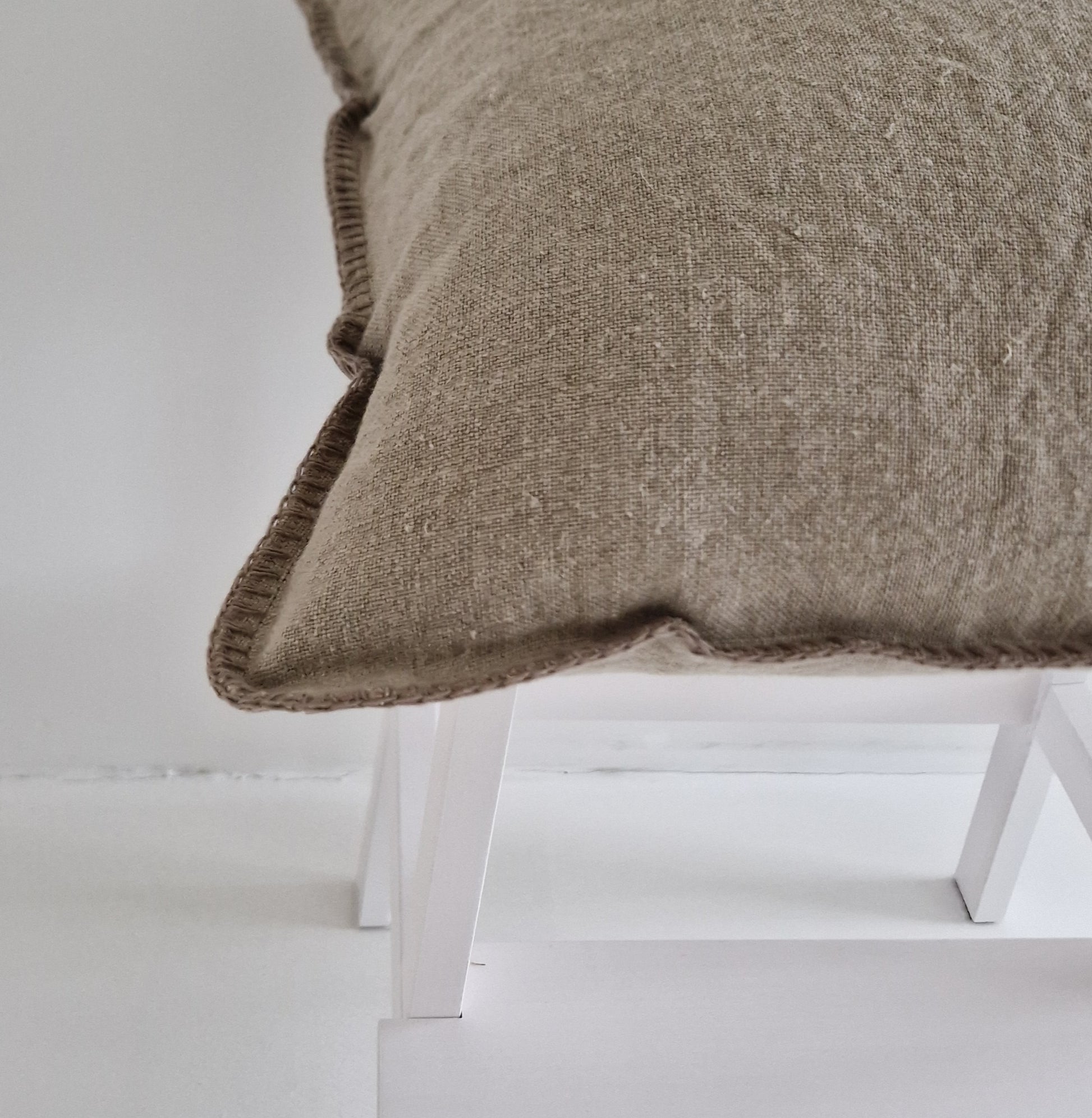 A real must-have for lovers of pure linen is this sturdy decorative cushion made of 100% linen. The pillow is made of very high quality linen, which makes it feel wonderfully soft. Available in the color natural linen and finished with a sturdy feston stitch in a slightly darker shade.