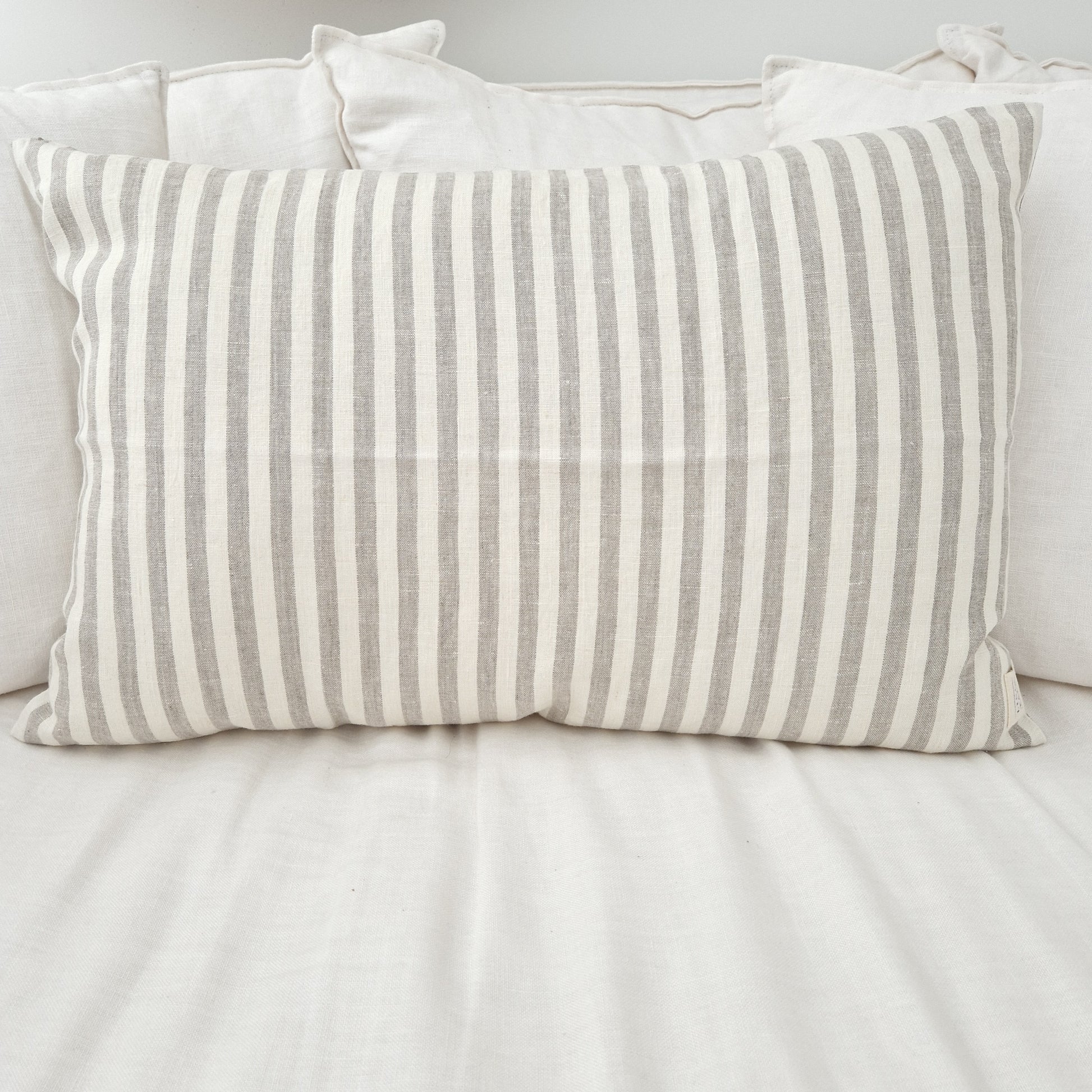 The Striped Off-White/Natural linen cushion cover is a subtle eye-catcher that combines tranquility and playfulness.