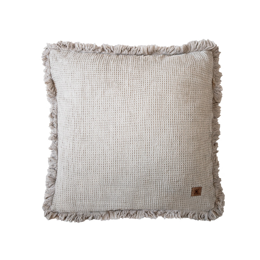 Very decorative is this beautiful and soft natural linen waffle pillow with fringe edge and a beautiful button closure at the back of the beautiful Scandinavian brand Xeraliving.