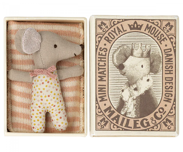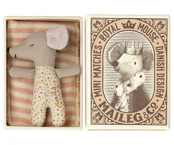 Maileg Sleepy Wakey baby mouse in matchbox Rose