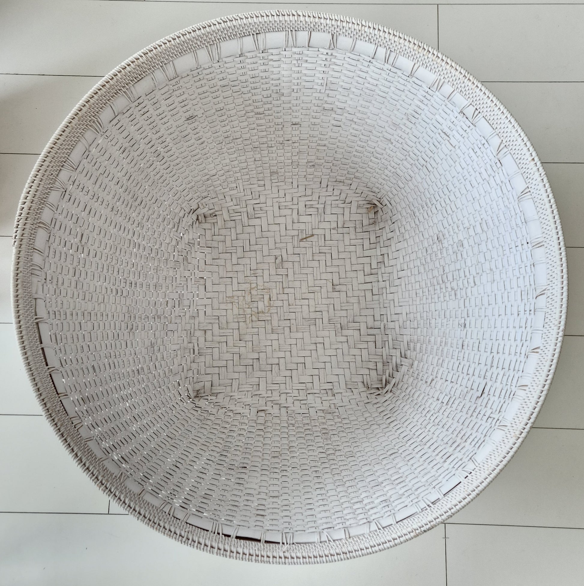 This XXL white rattan basket from the J-Line brand is beautiful.