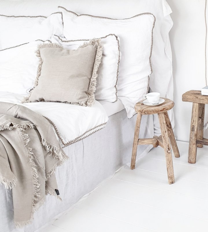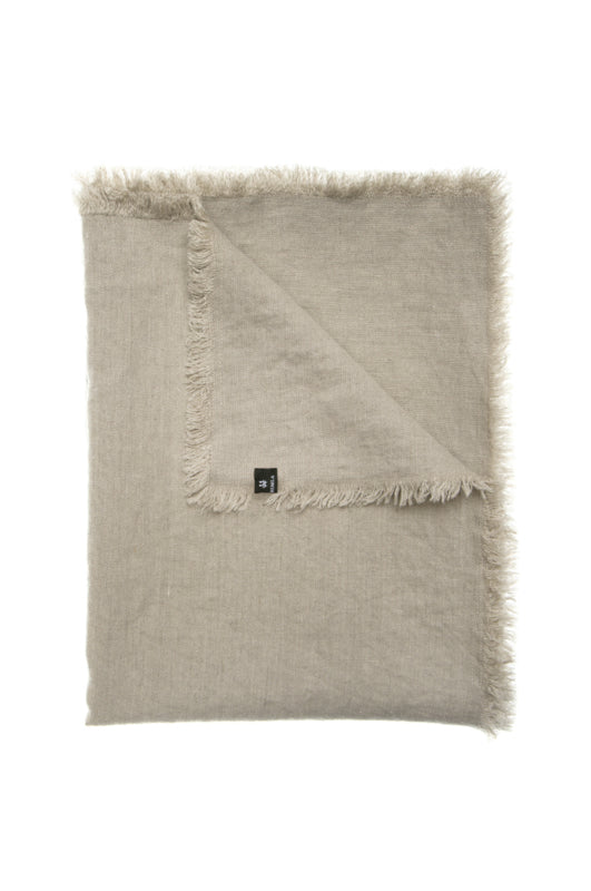This beautiful natural plaid from the Swedish brand Himla is made from a combination of linen thread with woolen threads. The fabric gives a melange look.The throw is soft and warm and has long fringes along the edges.
