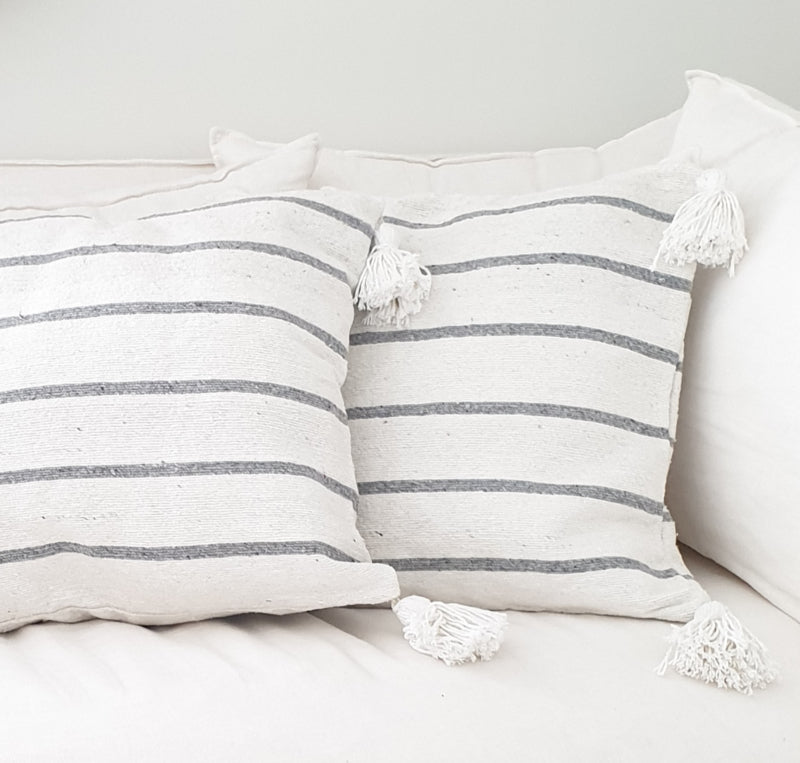 This nice Pompom cushion from Morocco is handmade from soft cotton.