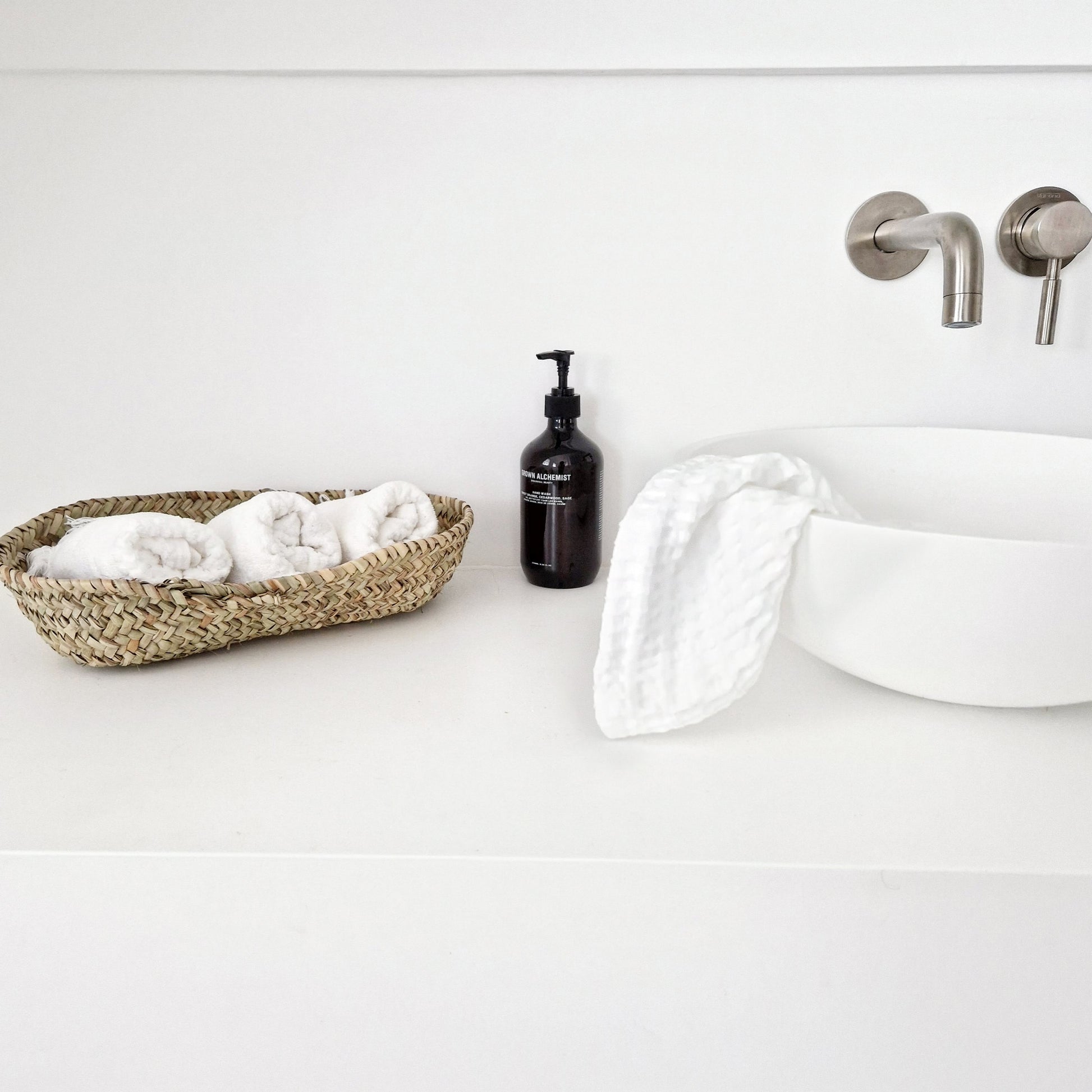 Nice decorative seagrass basket, a very nice styling item in, for example, the bathroom or as a cutlery basket.