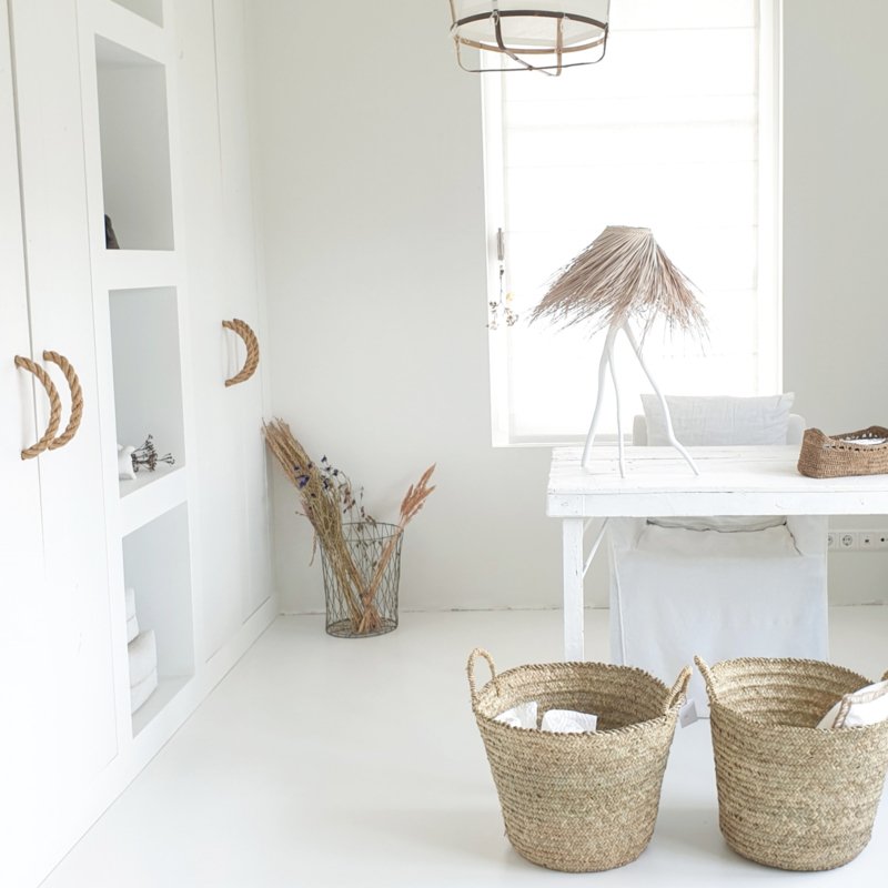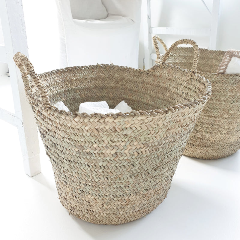 Nice decorative seagrass basket. Perfect storage for throws. Also very nice with, for example, an olive tree in it.